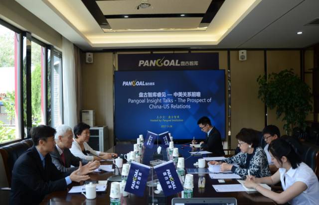 在随后的“盘古智库睿见——中美关系前瞻”闭门研讨会上,谢淑丽女士和与会的学者、研究人员就朝核、中美经贸以及南海问题等进行了深入地探讨和交流。