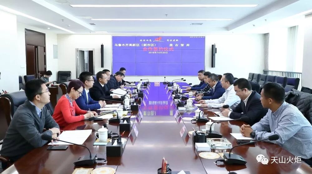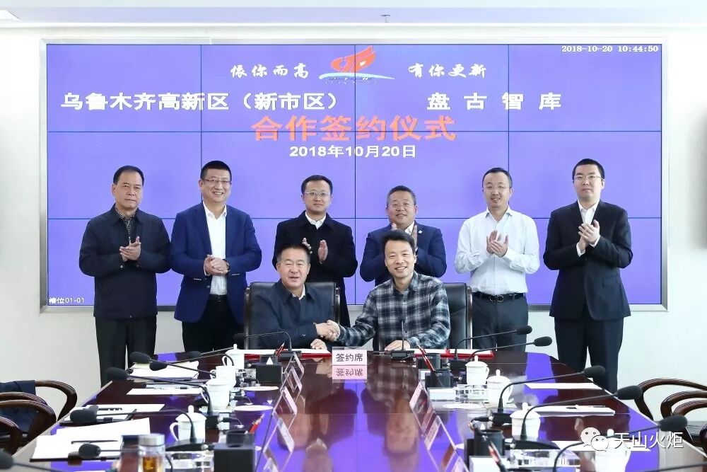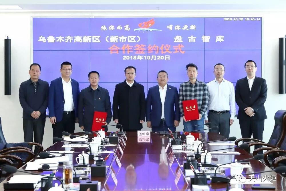10月20日,乌鲁木齐高新区(新市区)与盘古智库合作签约仪式在创新广场举行